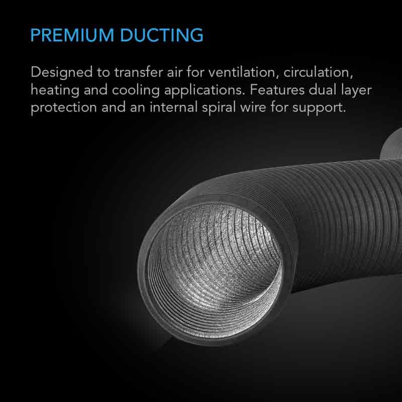 Ce conduit est conçu pour diverses applications de ventilation, de circulation et de transfert de chauffage/refroidissement. Il comporte une protection à quatre couches, ce qui le rend plus durable et résistant aux fuites que les modèles à une seule couche.