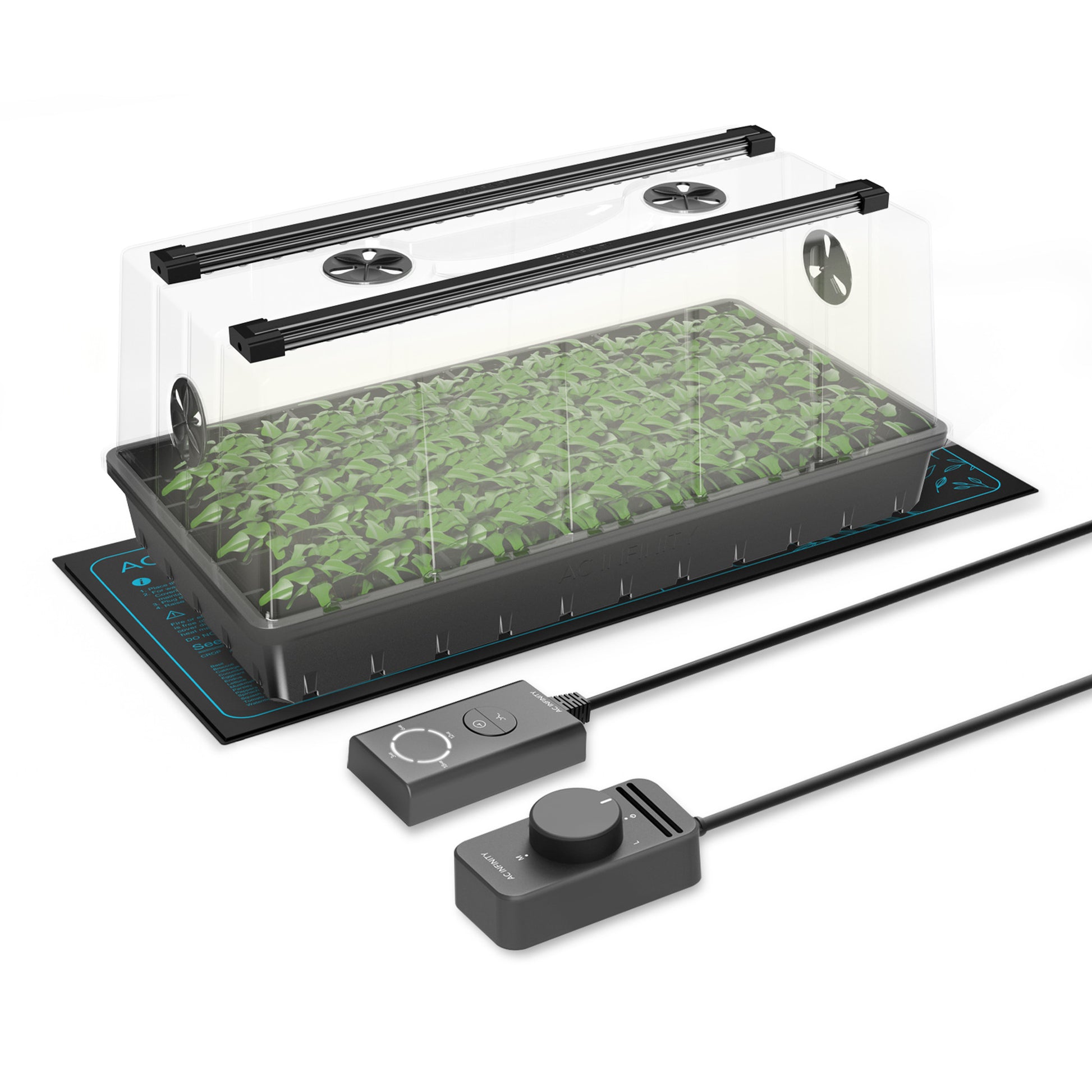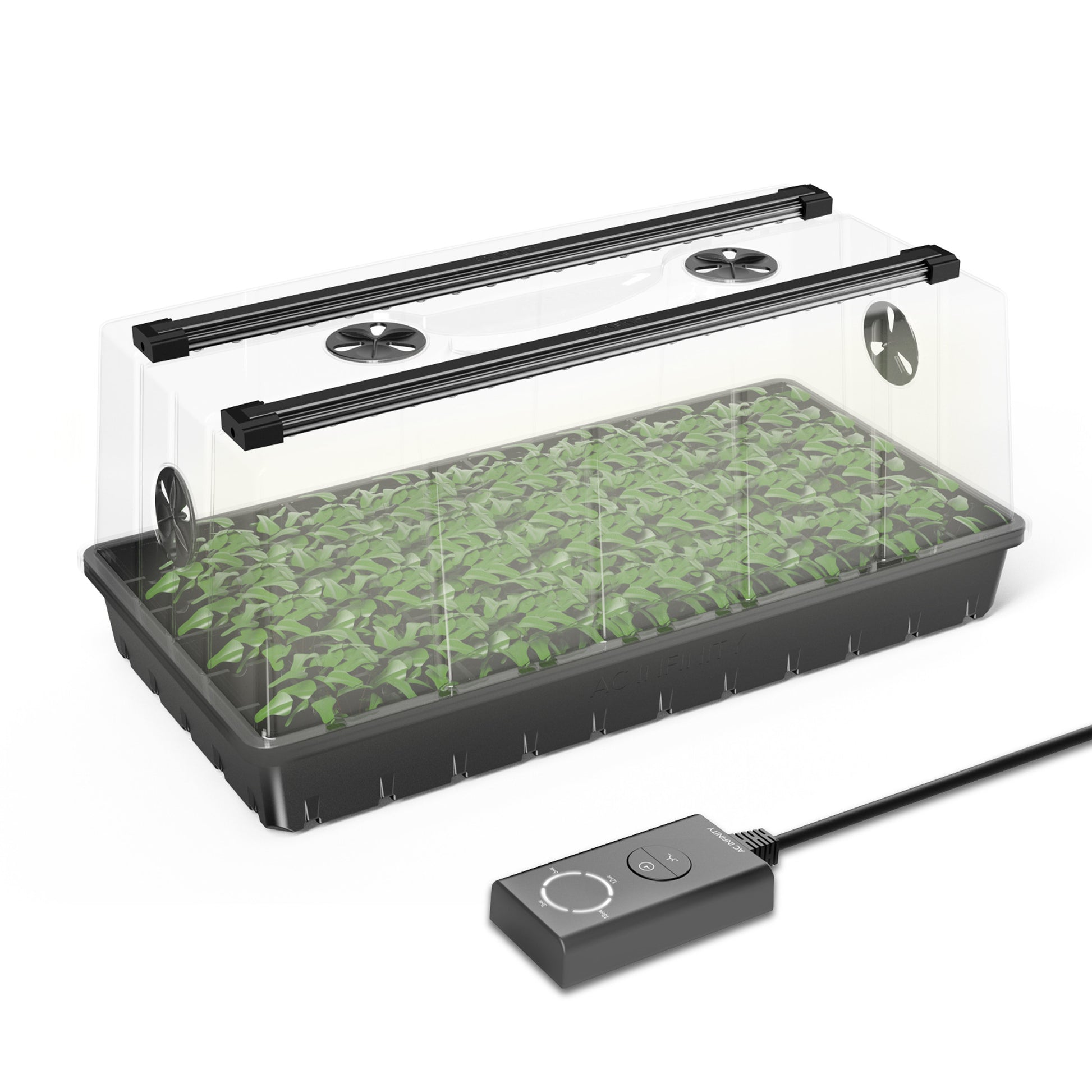 Un kit de germination en forme de dôme conçu pour favoriser la croissance et la propagation réussies des plantes en produisant un environnement très humide. Le dôme transparent permet une saturation lumineuse optimale tout en offrant une observation facile de la progression de vos plantes. Les évents réglables sur le dôme offrent un contrôle complet de l'humidité grâce à une rotation douce et sans effort. Effectuez d'autres ajustements avec l'extension de hauteur en option, qui peut être utilisée pour élever le dôme pour les projets de clonage. Les plateaux d'égouttement et de semis s'adaptent parfaitement pour supporter jusqu'à 40 semis tout en récupérant l'excès d'eau et en évitant les fuites dans le processus.