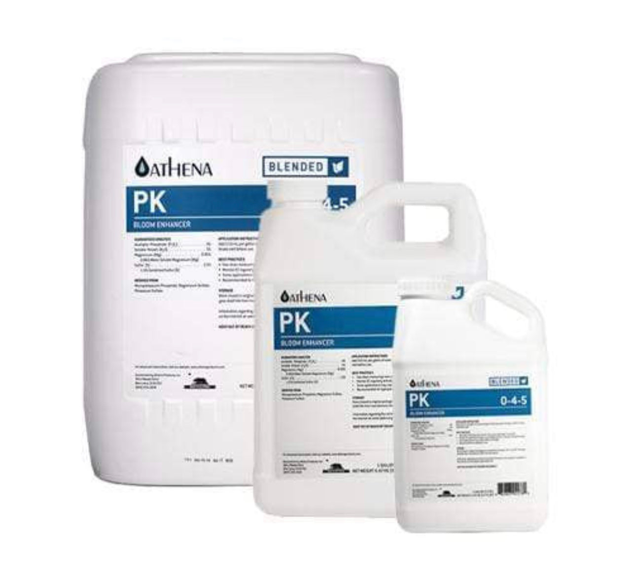 Athena PK est un complément équilibré stimulant la floraison à leurs engrais Bloom. Ce booster liquide propre est conçu pour compléter pendant la phase de floraison intermédiaire à tardive. Athena PK est un booster à faible teneur en azote qui fournit du phosphore et du potassium supplémentaires dont les plantes à haut rendement ont besoin pour une production maximale. Une biodisponibilité élémentaire équilibrée est essentielle pendant la phase de floraison pour stimuler la production d’huiles essentielles et de terpènes.