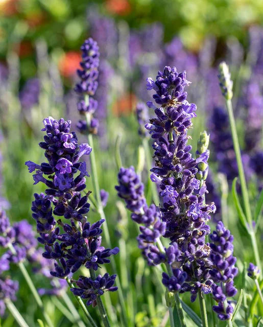 Avec une hauteur de 28 à 33 cm (11 à 13 po), la lavande Blue Spear se plaît bien en pot, et les plants en pot ont un potentiel certain sur la table du marché. De la fin du printemps à la fin de l'été, ses flèches de fleurs parfumées attirent toutes sortes de plantes. des pollinisateurs. Les plantes ont une forme en monticule, mais sont très dressées, elles peuvent donc être plantées plus près les unes des autres dans la rangée. Chaque plante a une largeur d'environ 28 cm (11").