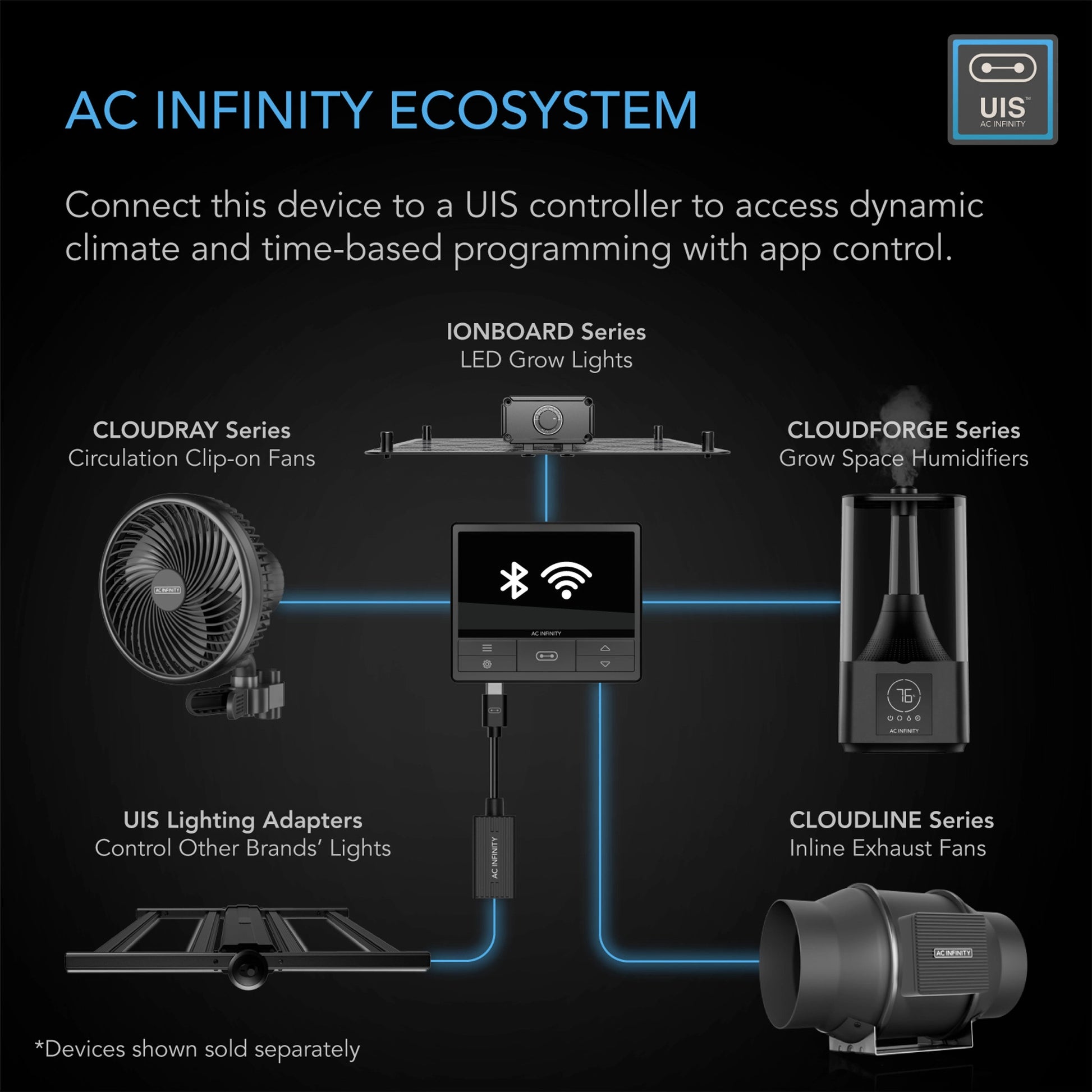 - Connects to UIS controllers for dynamic climate triggers, grow cycles, scheduling, alerts, and app control!