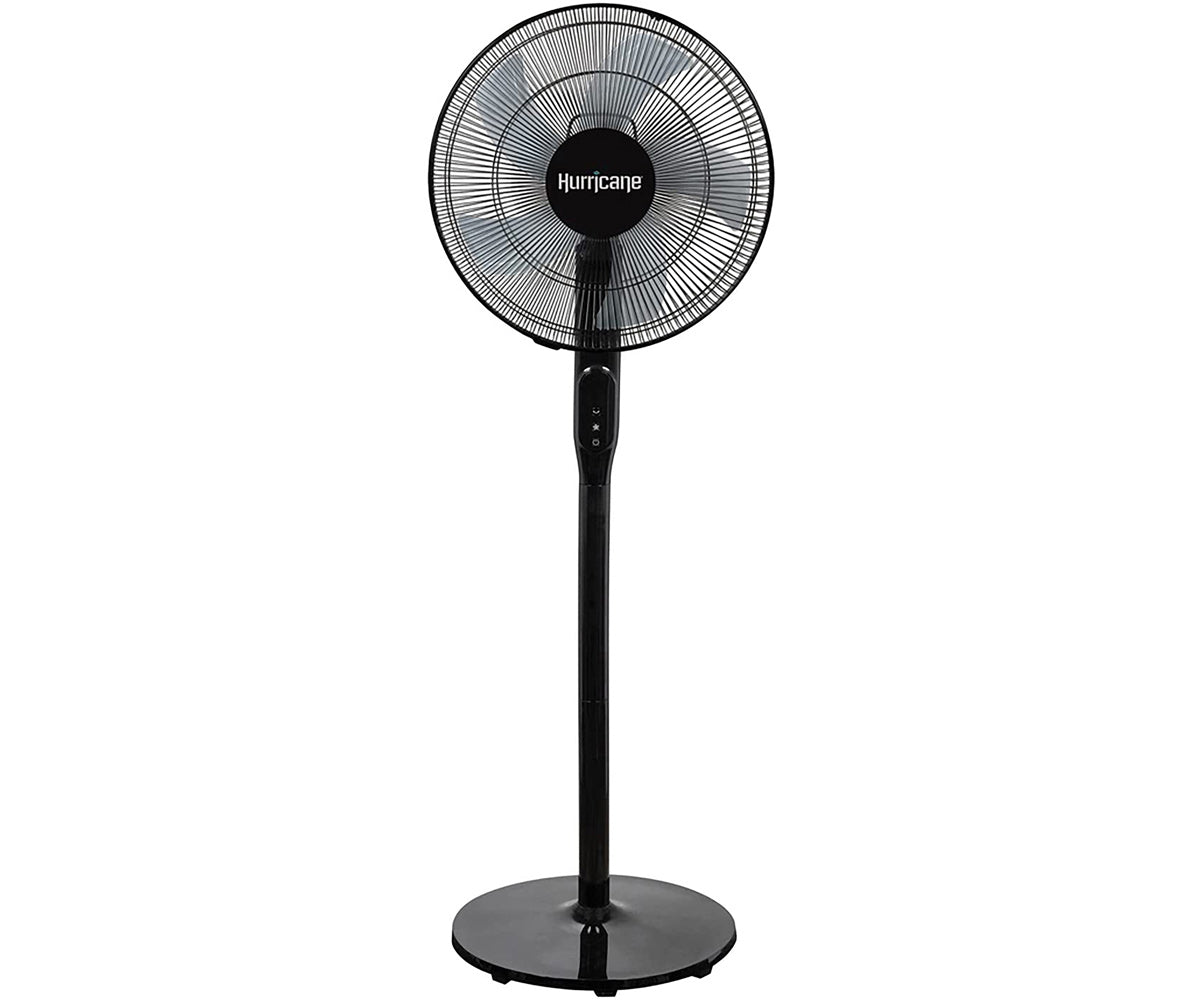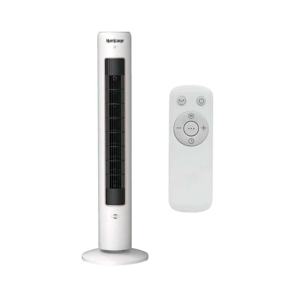 Hurricane at Home™ 40 inch Triple-Action Air Enhancing Tower Fan oscillates at 60 degrees, and has 3 speed settings and 3 wind modes: normal, breeze, and sleep. Normal mode creates a consistent, comfortable airflow, breeze mode replicates nature's light, cool wind, and sleep mode adjusts airflow throughout the night as your sleep deepens. The fan is easy to assemble, comes with a 6 foot power cord, and can be controlled with the included multi-functional remote control.