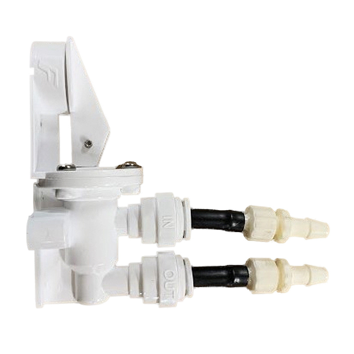 Installs on inlet line. If there is a leak anywhere in the system and water reaches the pad on the bottom of the leak protector the valve shuts off all incoming water preventing further damage from the leak. Includes fittings to attach to Blumat 8mm line.