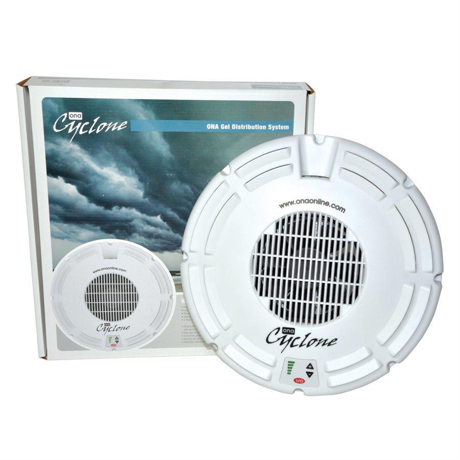 The Ona Cyclone is a cost-effective high-quality Ona Gel Distribution System. This portable fan runs very quietly while effectively destroying odors anywhere it's needed! Loaded with a 20 Liter pail of Ona Gel, it will provide high volume and high capacity odor control in the worst conditions