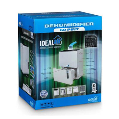 Note: Ideal-Air Dehumidifiers are now rated at AHAM standards (80°F, 60% relative humidity) based on a recent USA Department of Energy (DOE) ruling. There is no change to the unit itself, only to the temperature and humidity at which the reading is being taken from. Previously they were rated at a higher temperature and humidity level based on hydroponic industry standard usage (86°F, 80% relative humidity).